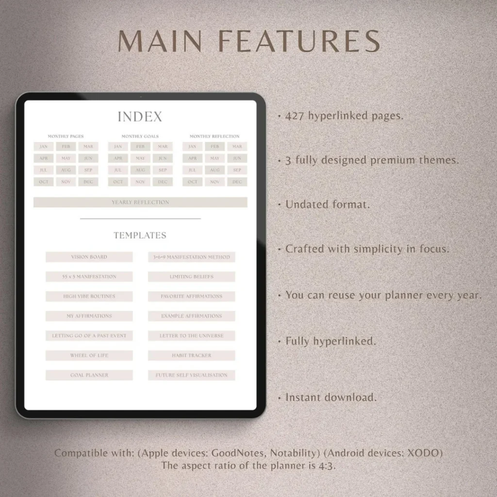 ✅ The planner can be used on Apple, Android, & Windows Tablets.