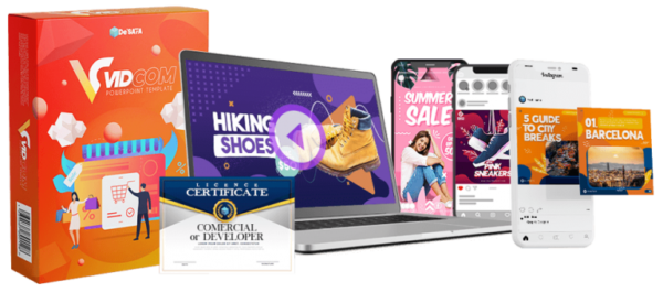 VidCom is a new collection of PowerPoint animation templates such as promotion video templates, static design templates, story templates and many more that you can use to create videos and graphics.